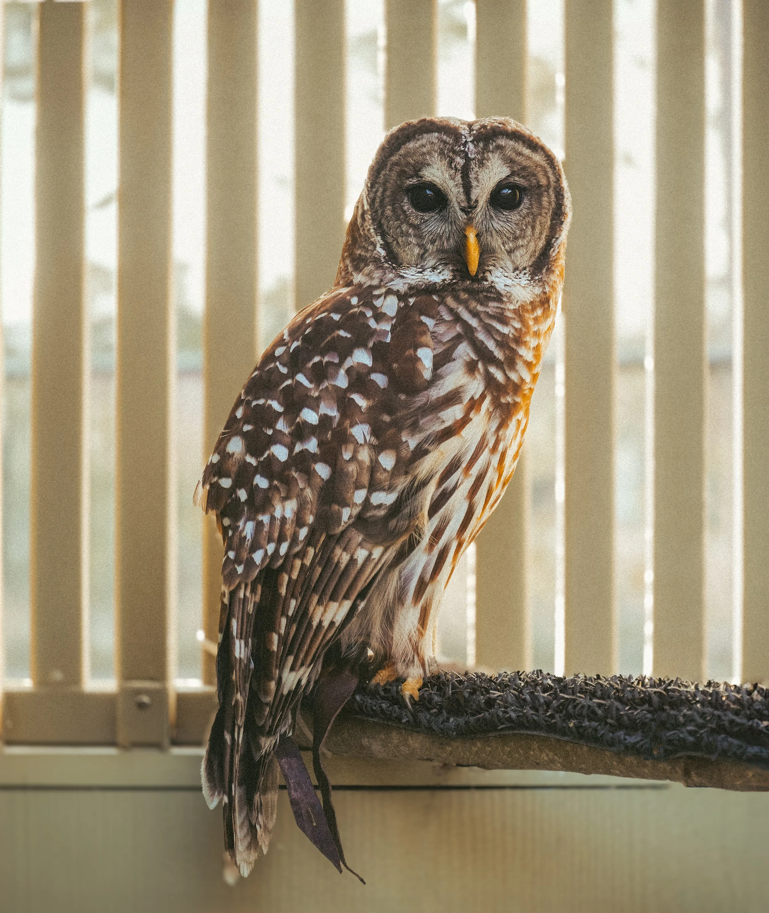Barred Owls have striped feather patterns down their chests, which is how they got their “barred” name. It’s common to find Barred Owls near swampy areas, as these birds prefer wooded areas near water, and have been nicknamed the “Swamp Owl.” Barred Owls are year-round residents, meaning they do not migrate.