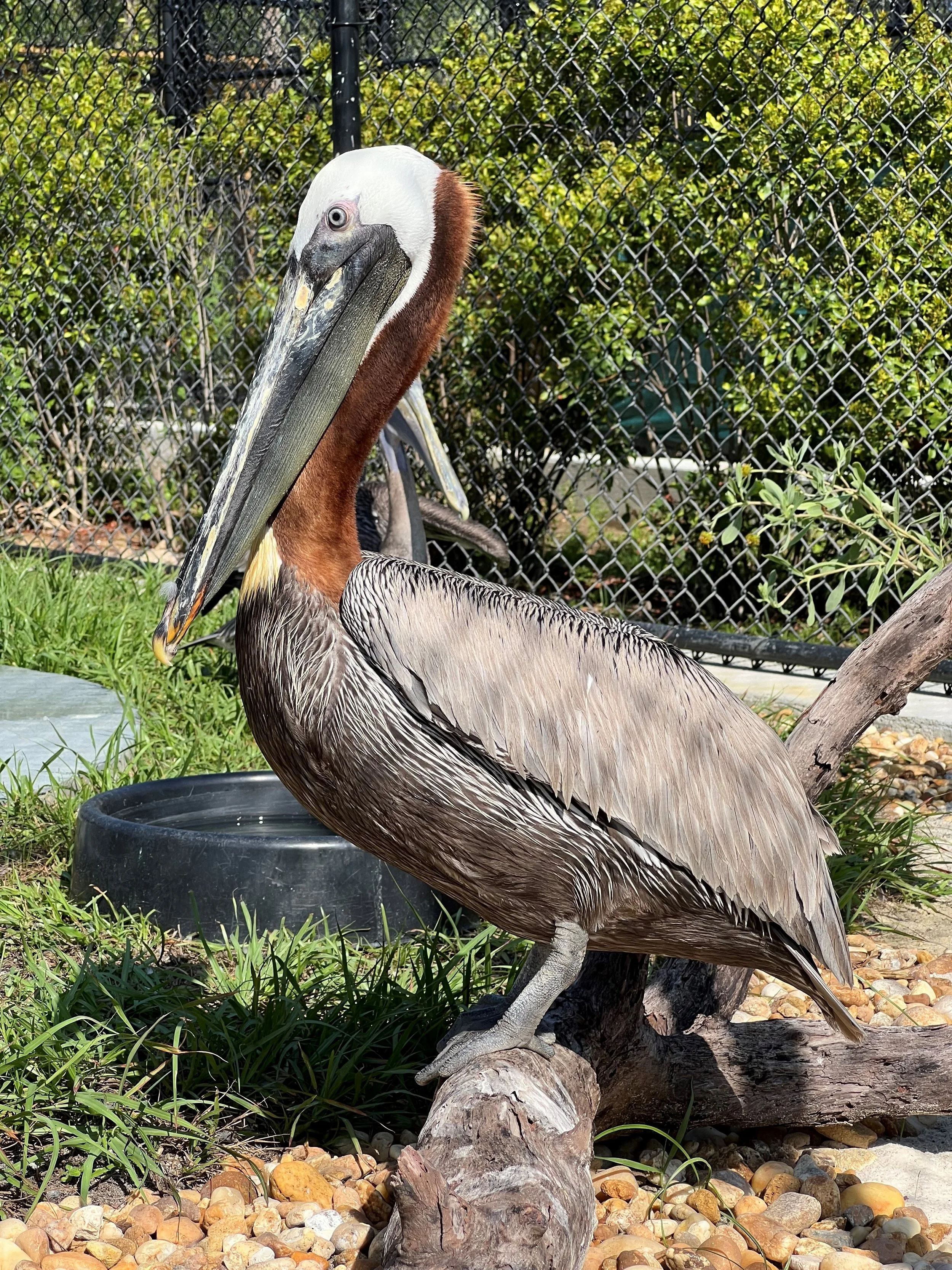 Arvy is one of the Brown Pelicans in the Waterbirds habitat at Busch Wildlife Sanctuary. Arvy’s survival story made headlines nationwide when she was rescued in 2021. Arvy was found in the icy Connecticut River, likely blown off-course during migration. It was clear Arvy’s best chance at survival would be at Busch Wildlife Sanctuary, so she was flown to our rehabilitation center where she was treated for pneumonia and frostbite.