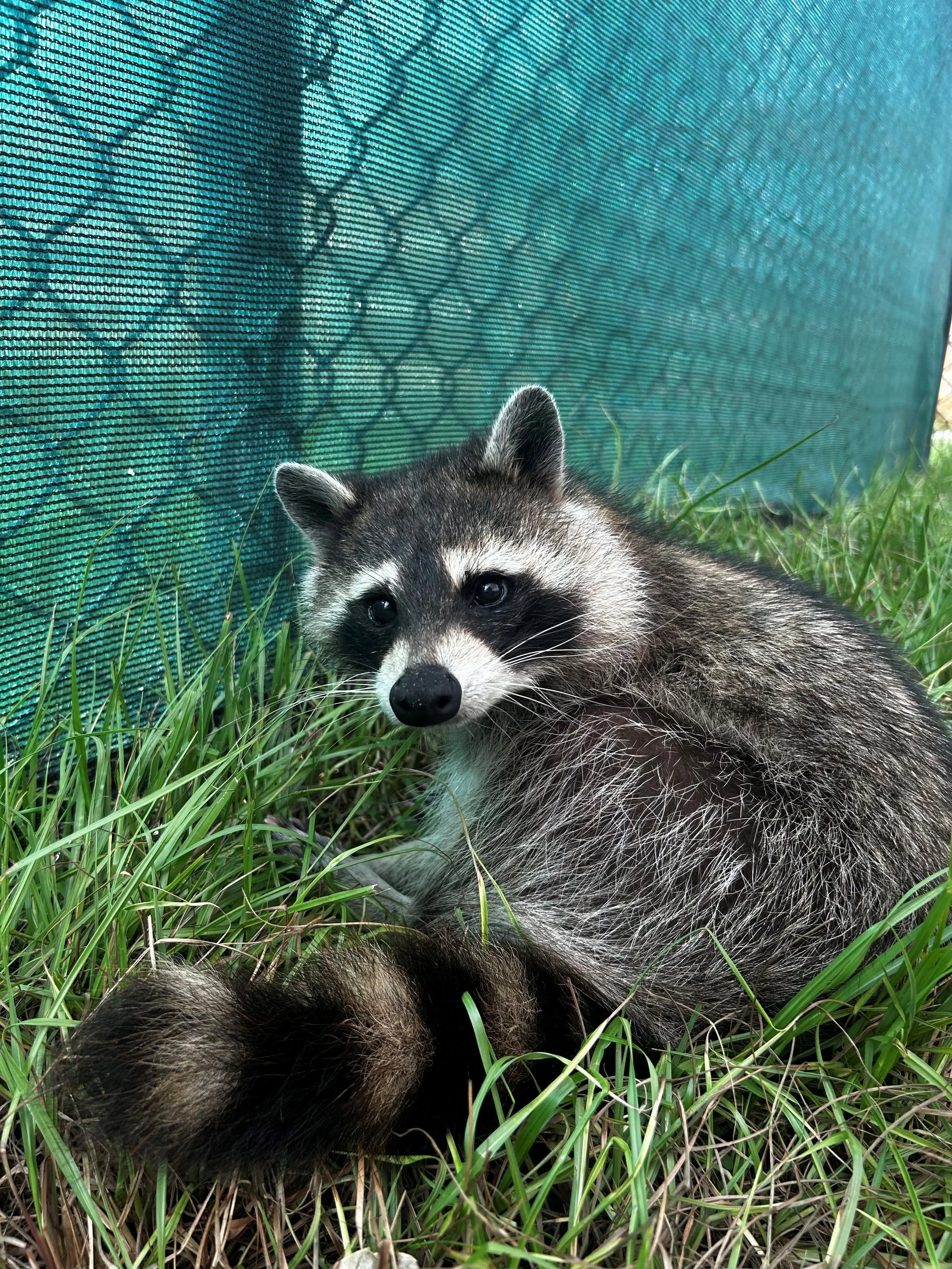 Friendly is the larger of the two Raccoons at Busch Wildlife Sanctuary. Friendly is here because, as his name suggests, he’s a little too comfortable around humans. That’s because he was kept as a pet before he was surrendered to the Sanctuary. He is too reliant on humans to be released.