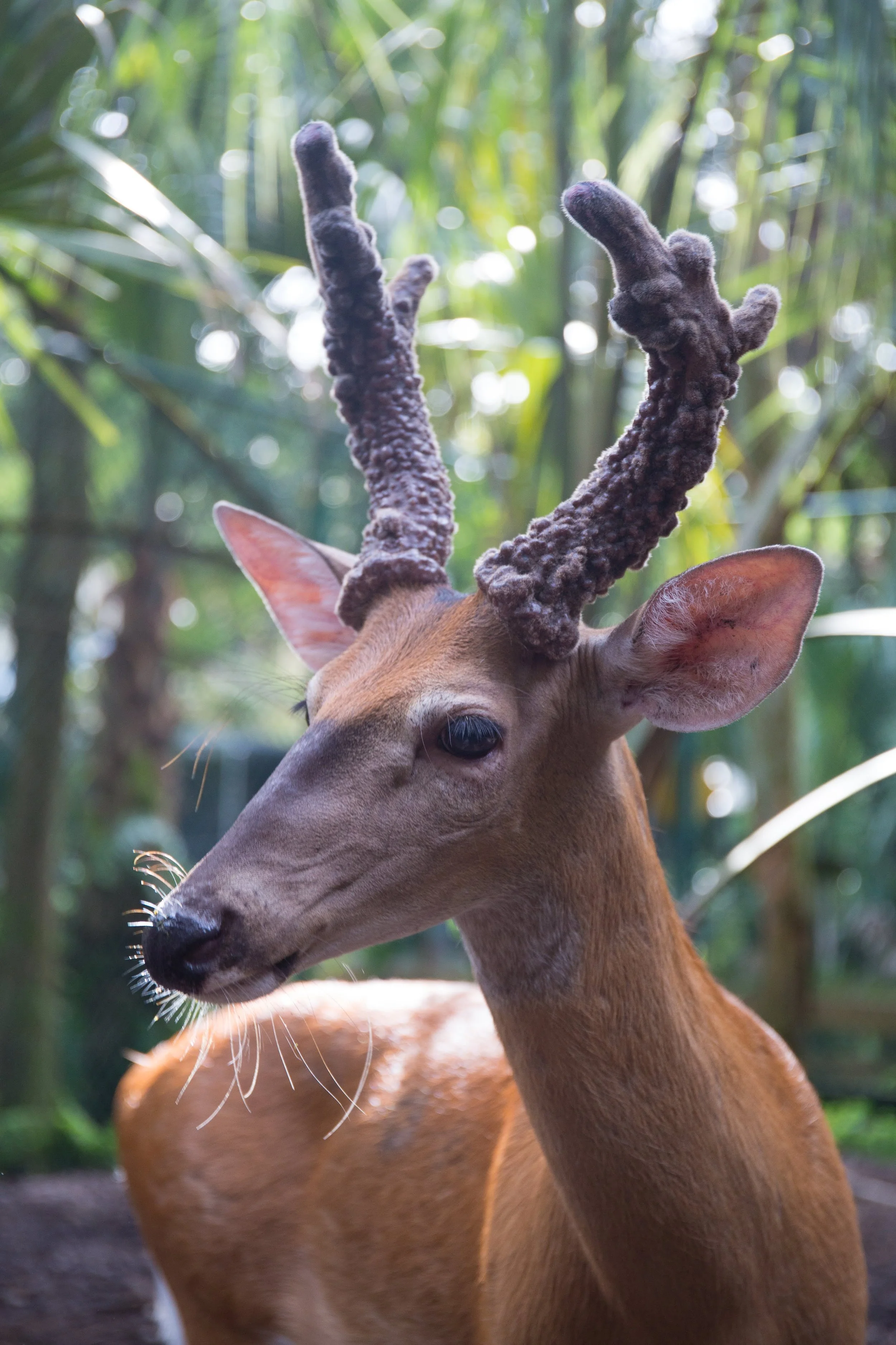 Cypress also has a condition called Cactus Buck, which causes his antlers to be bumpy. This is because of a hormonal imbalance. He is unable to shed his antlers like other male deer.