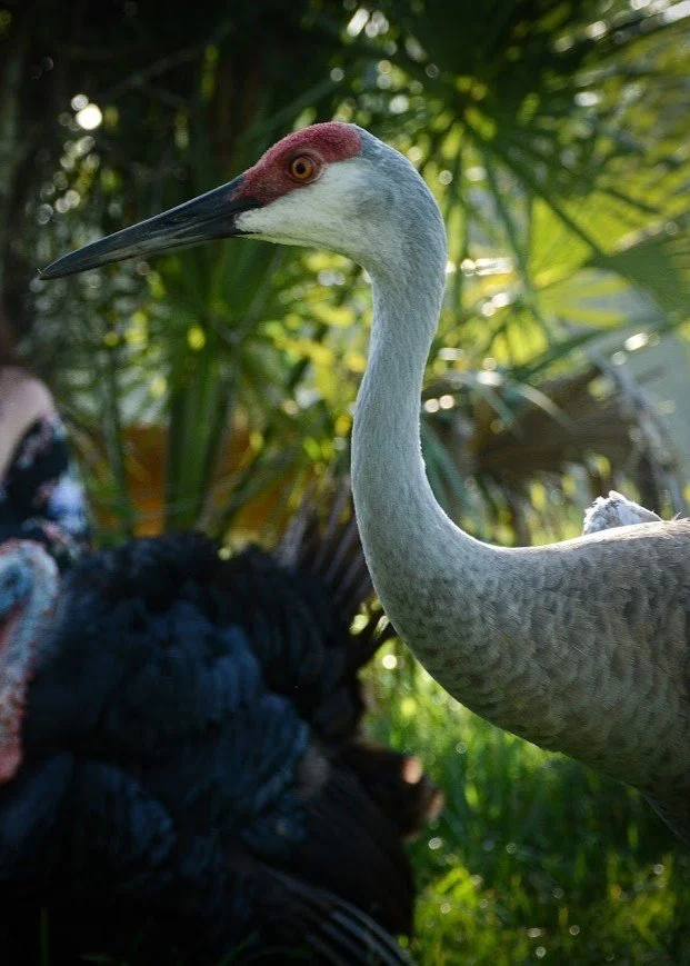 Sandhill Cranes are easy to spot. They’re large birds, reaching heights up to 4 feet tall, commonly found in urban areas such as neighborhoods, golf courses, and other open expanses. Florida Sandhill Cranes are a non-migratory species that nest in freshwater ponds and marshes. There are now fewer than 5,000 Florida Sandhill Cranes across the state, and they are listed as a state-designated threatened species.