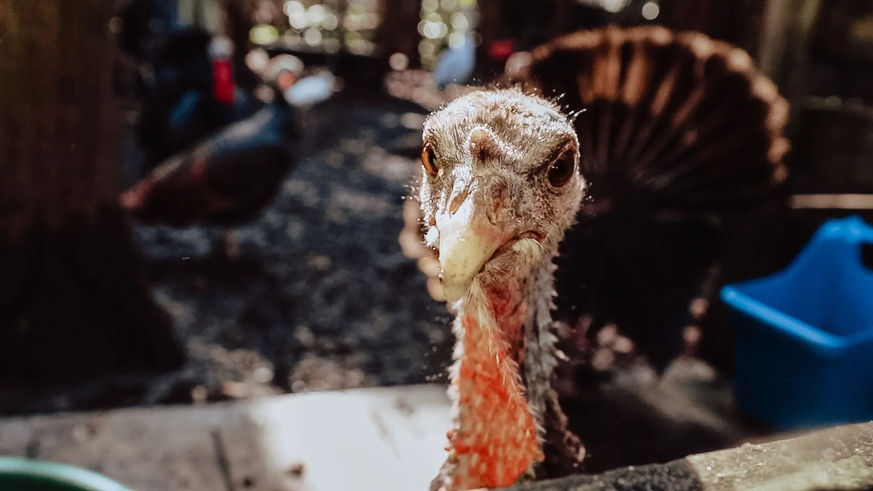 Roz is one of the Wild Turkeys at Busch Wildlife Sanctuary. Roz and her siblings, Nick and Atilla, were brought to our wildlife rehabilitation center as eggs. Our staff incubated the eggs and waited for the birds to hatch. Since they were hatched in captivity, it was decided to keep the turkeys at the Sanctuary as educational ambassadors to teach the public about their species.