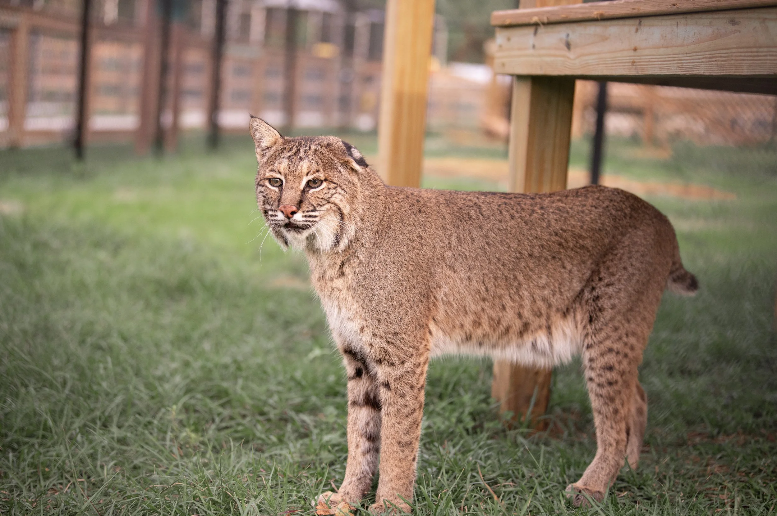 Clover, one of our Florida Bobcats, has been at Busch Wildlife Sanctuary since March 2018. She was first brought to our rehabilitation center as an orphaned kitten who needed to be raised and rehabilitated for release. We began to realize she was having some developmental issues and later found out she had cerebellar hypoplasia, meaning that her brain did not properly develop.
