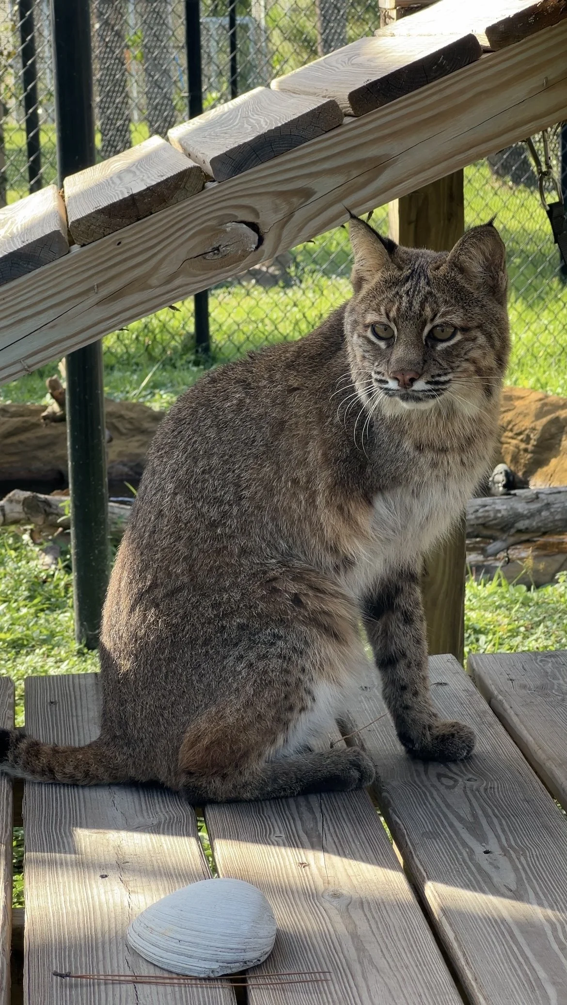 Baston is our biggest and oldest Florida Bobcat at Busch Wildlife Sanctuary! He’s here with us because a couple found him as a kitten, assumed he was a house cat, and tried to keep him as a pet. When the couple realized a few weeks later that he was a bobcat kitten, he was brought to the Sanctuary. Baston had not received proper nutrition and was slightly malnourished. Because he was acclimated to people so young, he is now too reliant on humans for survival and is not releasable.