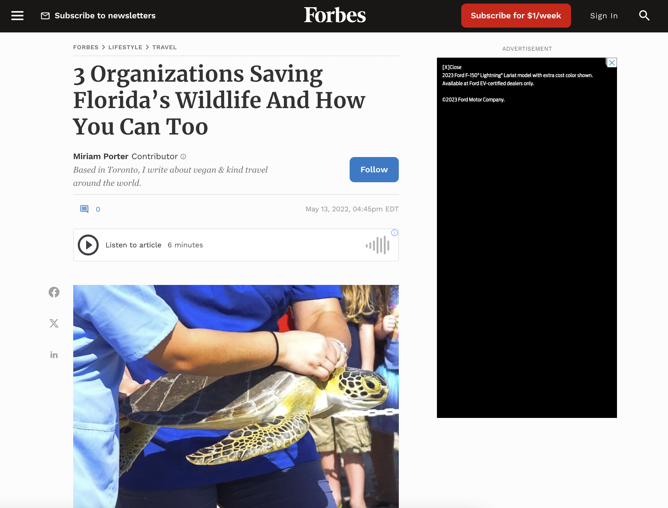 The Palm Beaches is home to gorgeous sandy shores, endless water activities, world class culture, outdoor festivals, shopping, and fabulous dining options under the shining sun. There are fewer crowds and it’s an ideal spot to rest and recharge. As travellers to any new destination, it’s important to clean up after ourselves, practice sustainable tourism, preserve nature, and respect wildlife. We can all do our part to keep our earth beautiful and support initiatives that protect animals . From endangered and threatened sea turtles to injured foxes, raccoons and panthers, these three organizations are helping save Florida’s wildlife in The Palm Beaches.